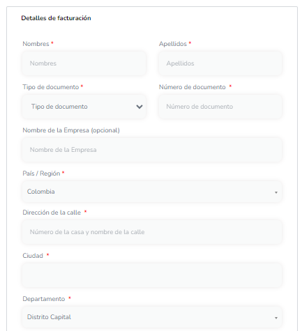 6: Completa los campos solicitados con tus datos personales para finalizar la compra.