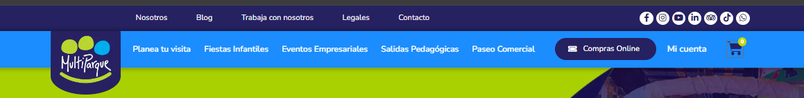 1: Ingresa a nuestro sitio web: multiparque.co y en la parte superior derecha de la pantalla, encontrarás la sección “COMPRAS ONLINE”. Haz clic en ella.