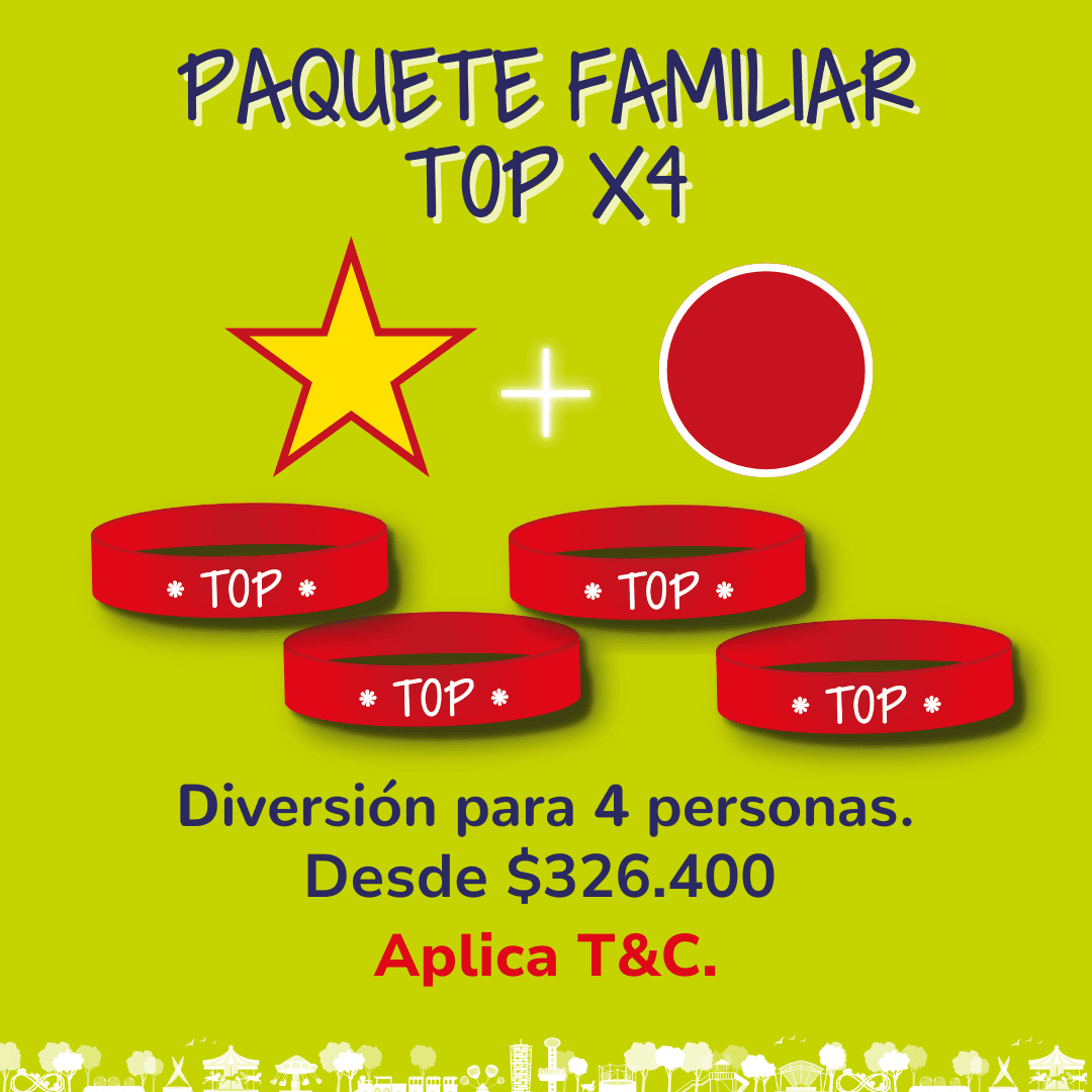 • Aviso Pasaporte TOP (31 de octubre,1,2 y 3 de noviembre): La atracción Trampoline Park no estará disponible por mantenimiento. Como compensación por las molestias, tu Pasaporte TOP incluye 30 Tokens  de Arcade cargados en tu tarjeta. ¡Gracias por tu comprensión!